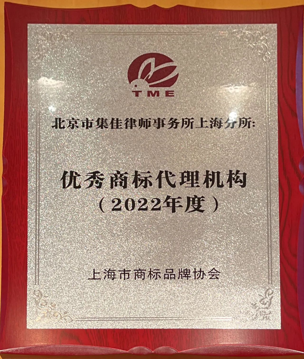 集佳上海分所被评为2022年度“上海市优秀商标代理机构”。