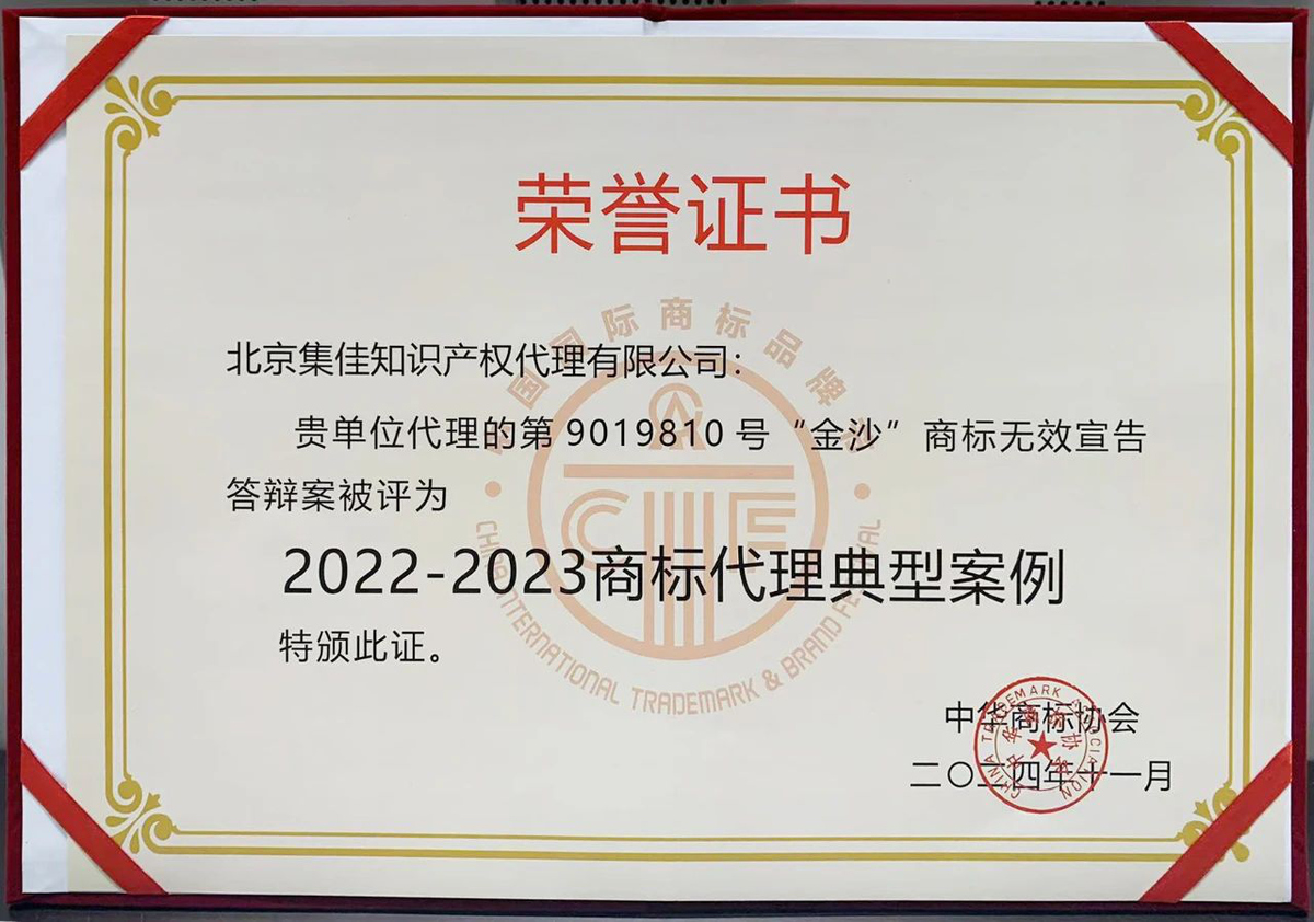 2024年11月24日下午,在商标节经典论坛之一的商标典型案例评析会议上,雷速 (中国)官方网站-足球篮球直播平台代理的“金沙”商标权无效宣告答辩案入选“2022-2023商标代理典型案例”。