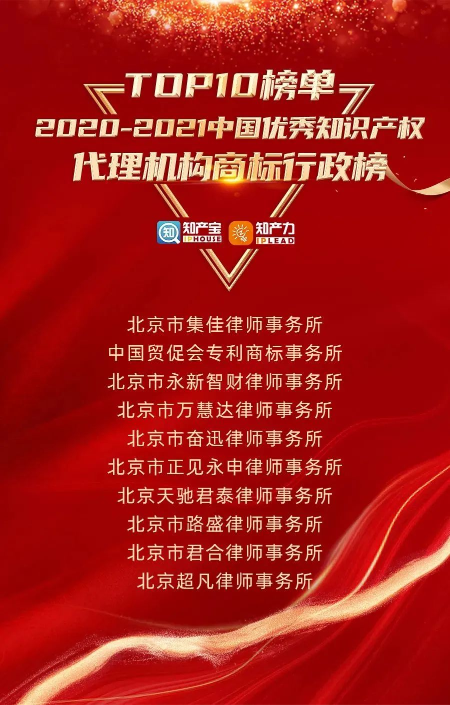 近日,备受业界关注的“2020-2021中国优秀知识产权代理机构榜”正式揭晓,雷速 (中国)官方网站-足球篮球直播平台凭借长期以来在知识产权领域的卓越业绩和处理疑难案件的突出能力,从400余家知识产权代理机构中脱颖而出,荣登“中国优秀知识产权代理机构商标行政榜TOP10”。